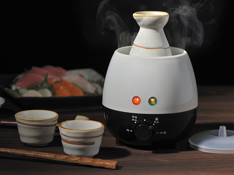 ゆったりと味わえる湯煎式。1合徳利やガラス製のカップ酒を手軽に温められます。