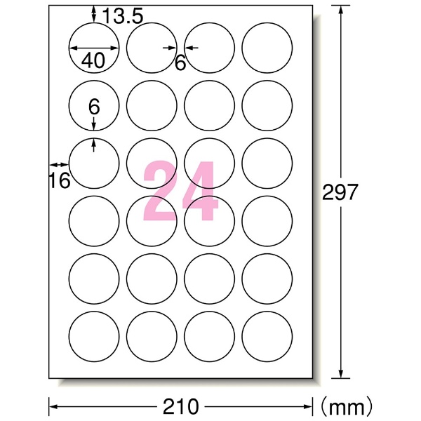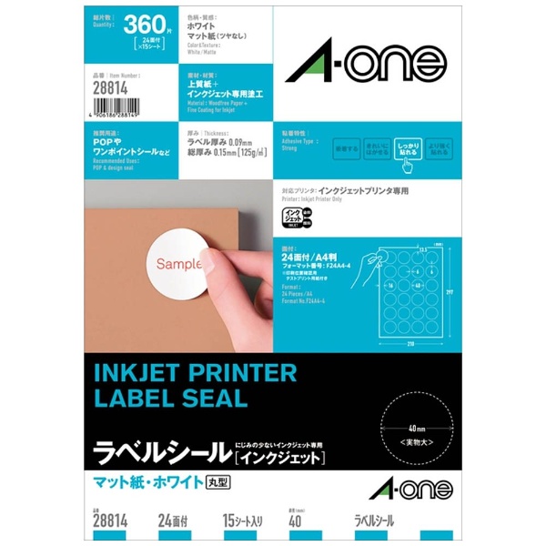 28814 (インクジェットプリンタラベル/紙ラベル/A4判 24面丸型40mmφ/15シート(360片)入り)