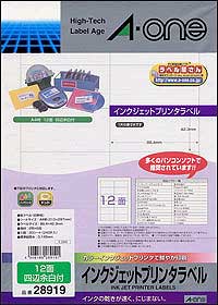28919 インクジェットプリンタラベル A4判・12面四辺余白付