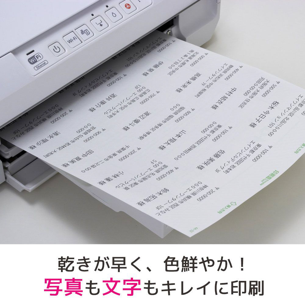 手間のかかる宛名や表示ラベルが手軽にキレイに作れます。乾きが早く、にじまないので小さな文字や線もキッキリ印刷。業務用に最適なお徳用パックです。入り数:500シート(9000片)。シートサイズ:A4判。塗工紙。