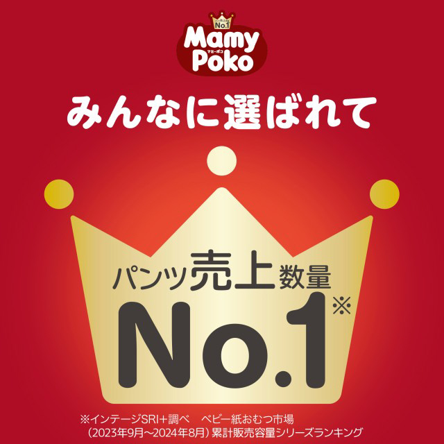 長時間のおでかけでもず〜っとモレ安心のかわいい紙おむつ。13kgまで長〜く使える 大きめMサイズ