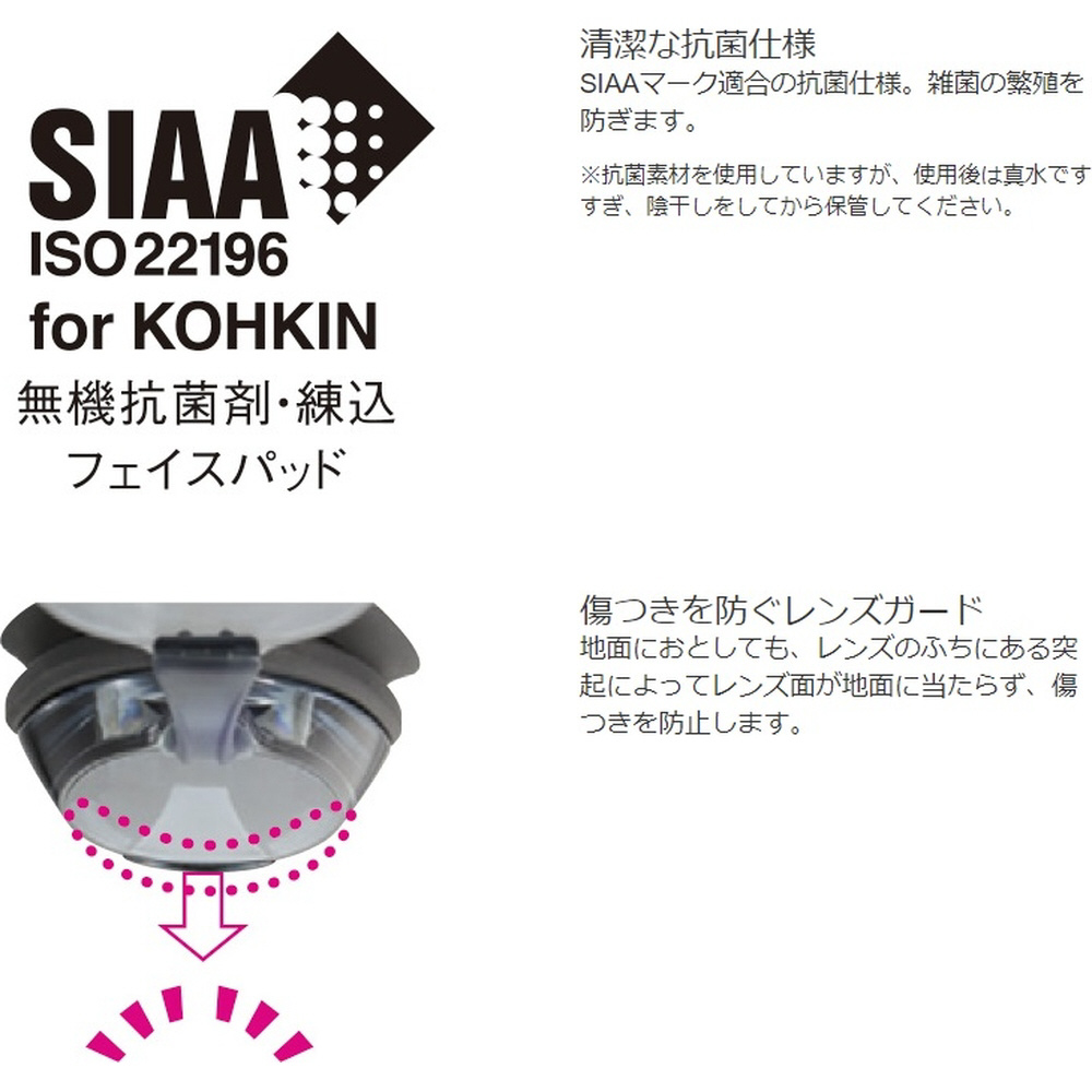 | 仕様1 | ・キズ防止 ・名前記入可 ・UVカット ・選べる鼻ベルト(XS、S、M、L) ・くもり止め ・抗菌 ・ミラー加工 ※フェイスパッド取り外して洗浄可。 |
