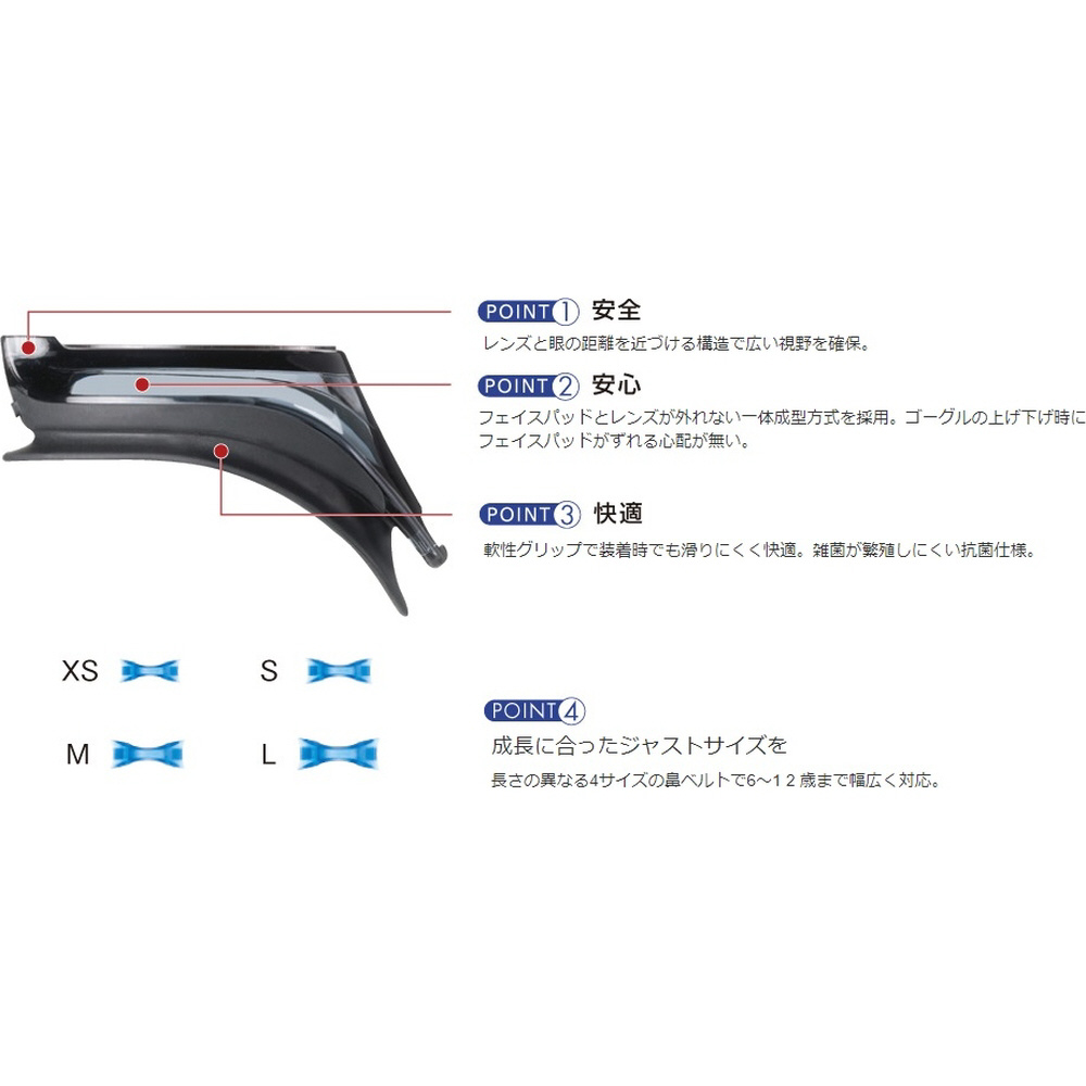 “子ども達のスイミング”を追求した、小学校全学年用ゴーグル。くもり止め効果持続性平均10倍の「SWIPE(スワイプ)」搭載でさらに快適に。