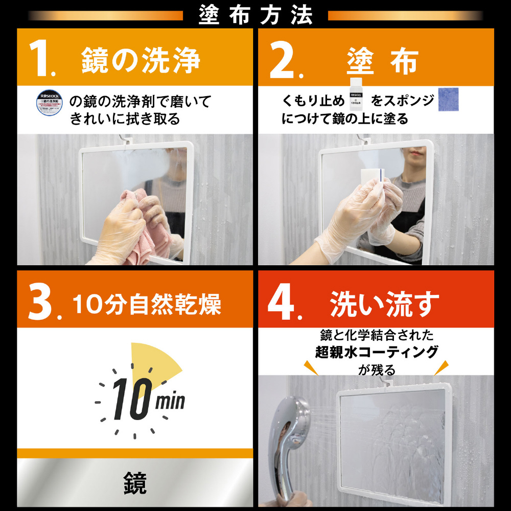 ※2 湯気の状態や鏡の汚れ具合、塗り方などの条件によって効果、持続期間は異なります。