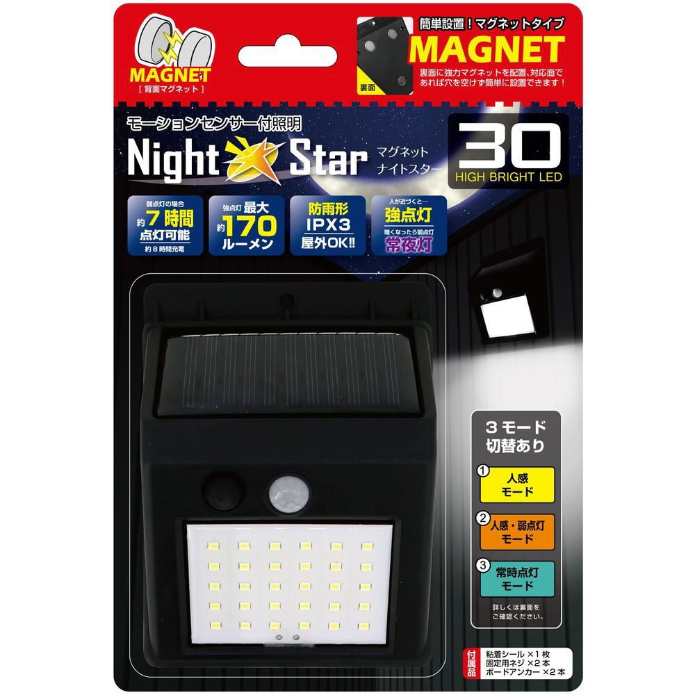 | 商品名 | モーションセンサー付照明マグネットナイトスター30灯 ブラック 30772 |