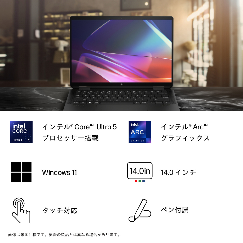 ノートパソコン HP Spectre x360 アッシュブラック 9D614PA-AACB [14.0型 /Windows11 Pro /intel Core Ultra 5 /メモリ:16GB /SSD:512GB /Office HomeandBusiness /日本語版キーボード /2024年4月モデル]