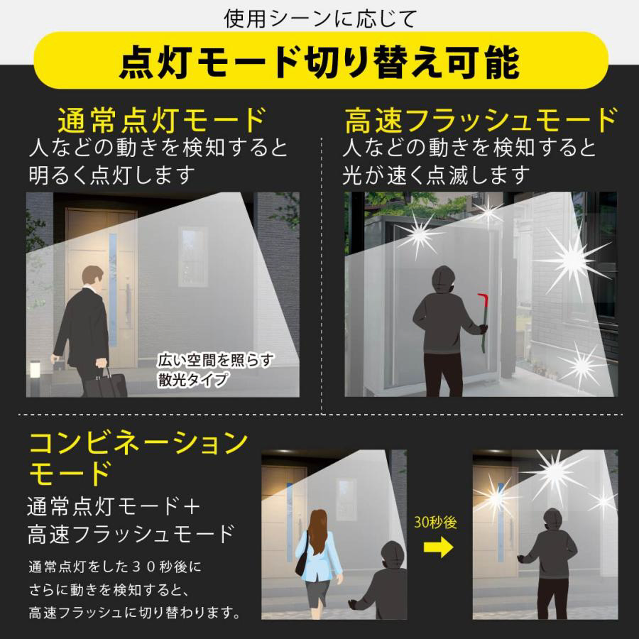 高速フラッシュ点滅で不審者に警告、不審者の存在を周囲に知らせます