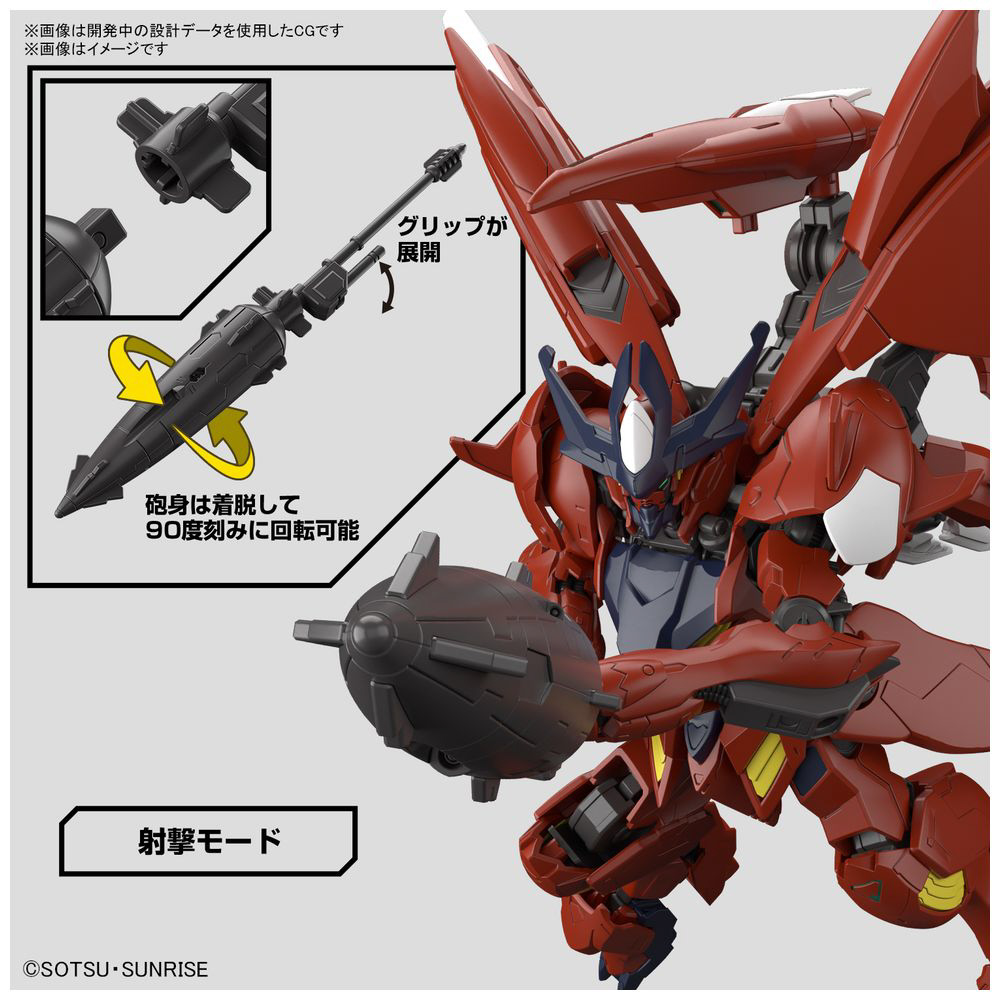 ■メイスはグリップが展開し射撃モードを再現可能。砲身は着脱して90度刻みに回転ができる。
