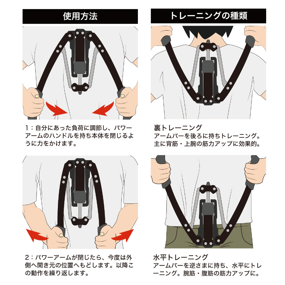 腕筋、腹筋、背筋、上腕など、上半身の筋力強化に。