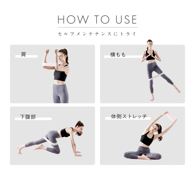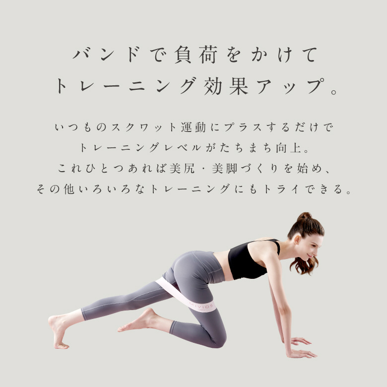 バンドの負荷を与えることで、通常のスクワット運動よりも幅広い筋肉を刺激し、下半身全体を効率よく鍛えることが可能。