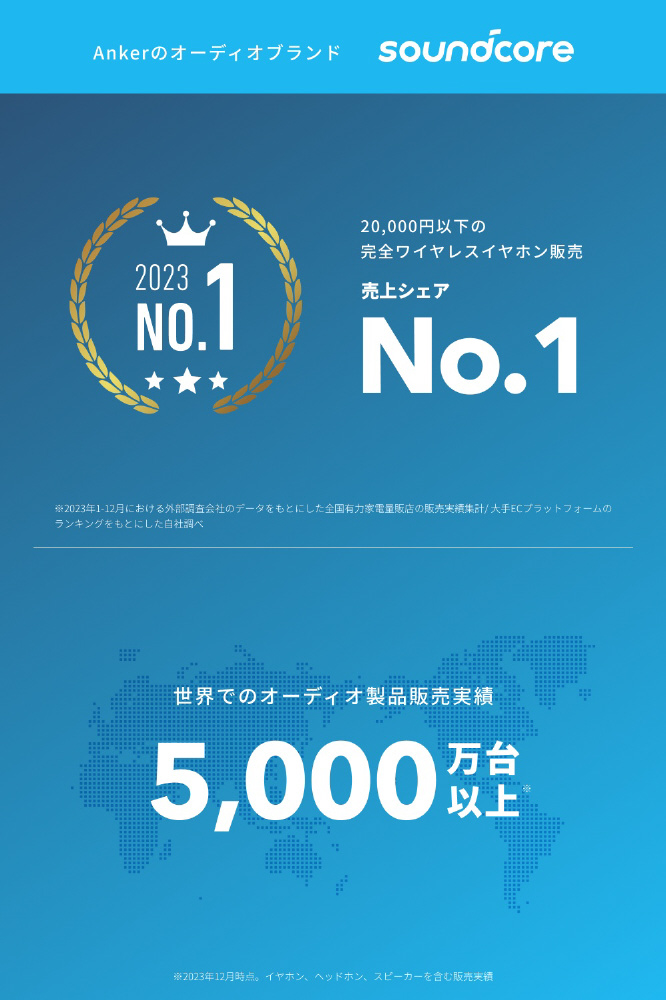 Anker独自技術のBassUp技術と大型の11mmドライバーにより、深みのある低音と迫力のサウンドを実現しました。またSoundcoreアプリでお好みの音質に調整いただけます。