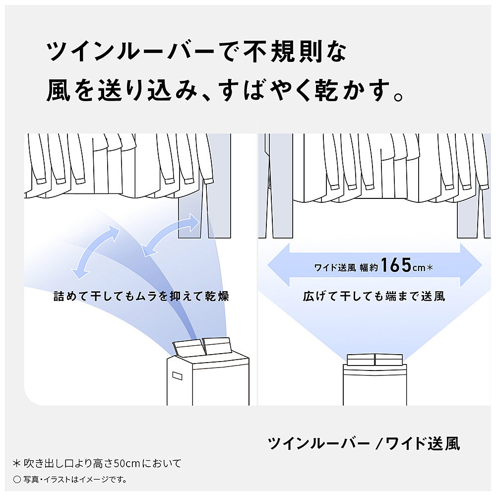 ●実使用時の運転時間や消費電力量は、環境や衣類の種類・量・干し方、部屋の広さにより異なります。