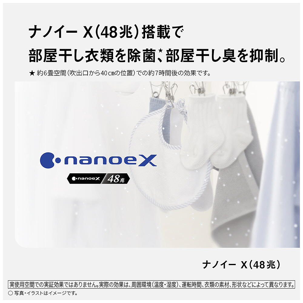 ナノイーX(48兆)で部屋干し衣類を除菌★1、部屋干し臭を抑制※5