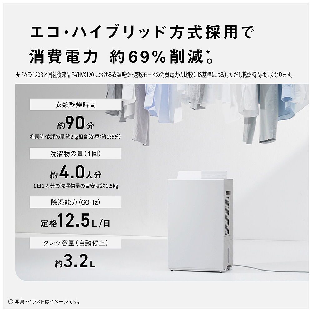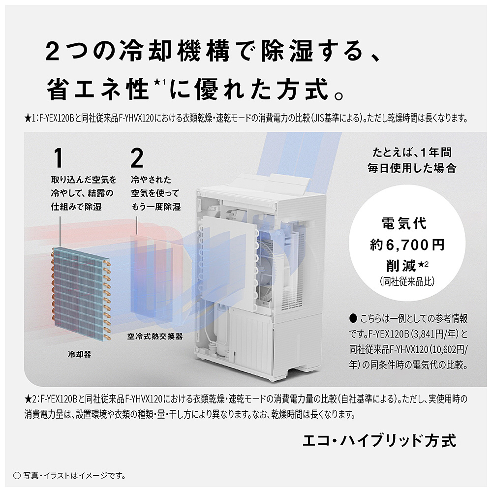 | 商品名 | 衣類乾燥除湿機 クリスタルホワイト F-YEX120B-W [エコ・ハイブリッド方式 /木造16畳まで /鉄筋33畳まで] |