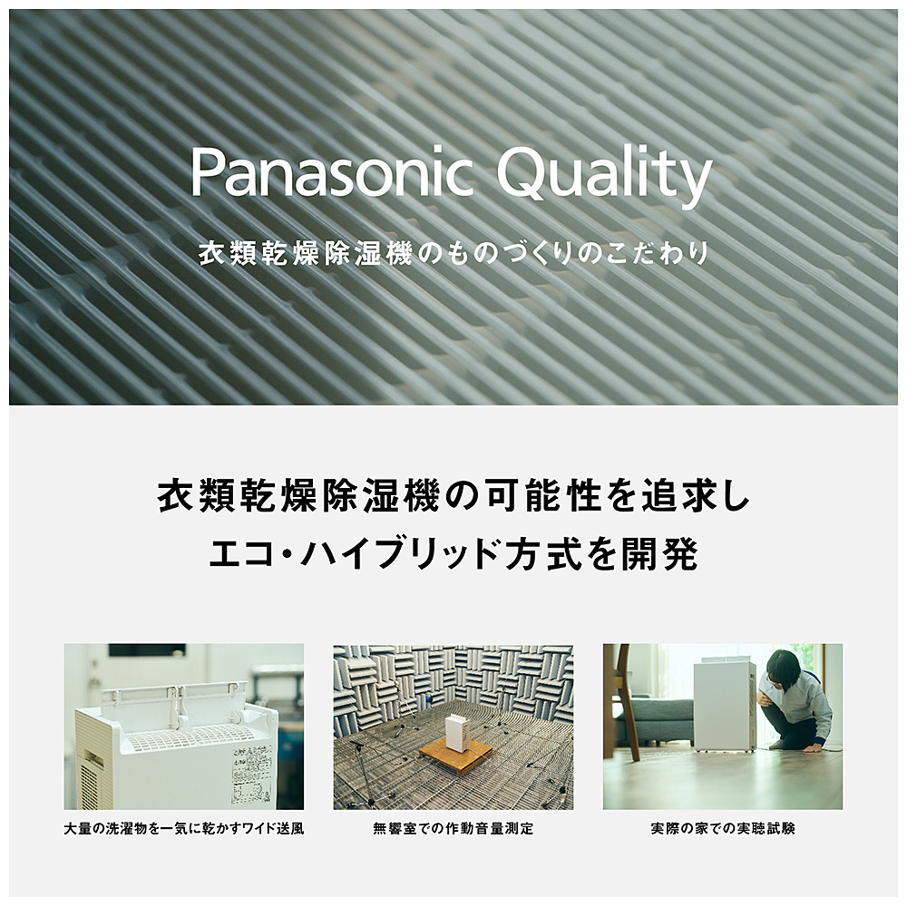 パナソニックは衣類乾燥除湿機の省エネ性能★1を大きく進化させました。新開発のエコ・ハイブリッド方式。