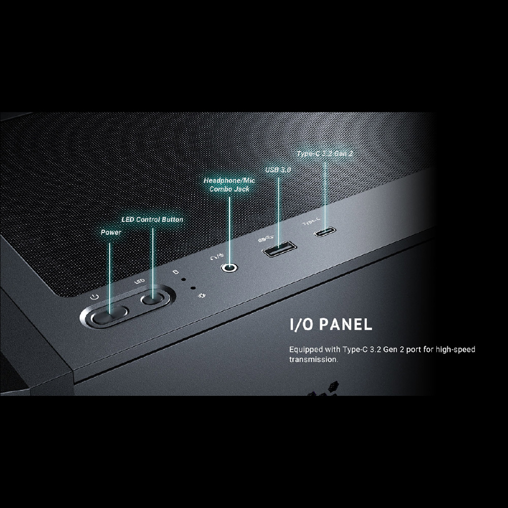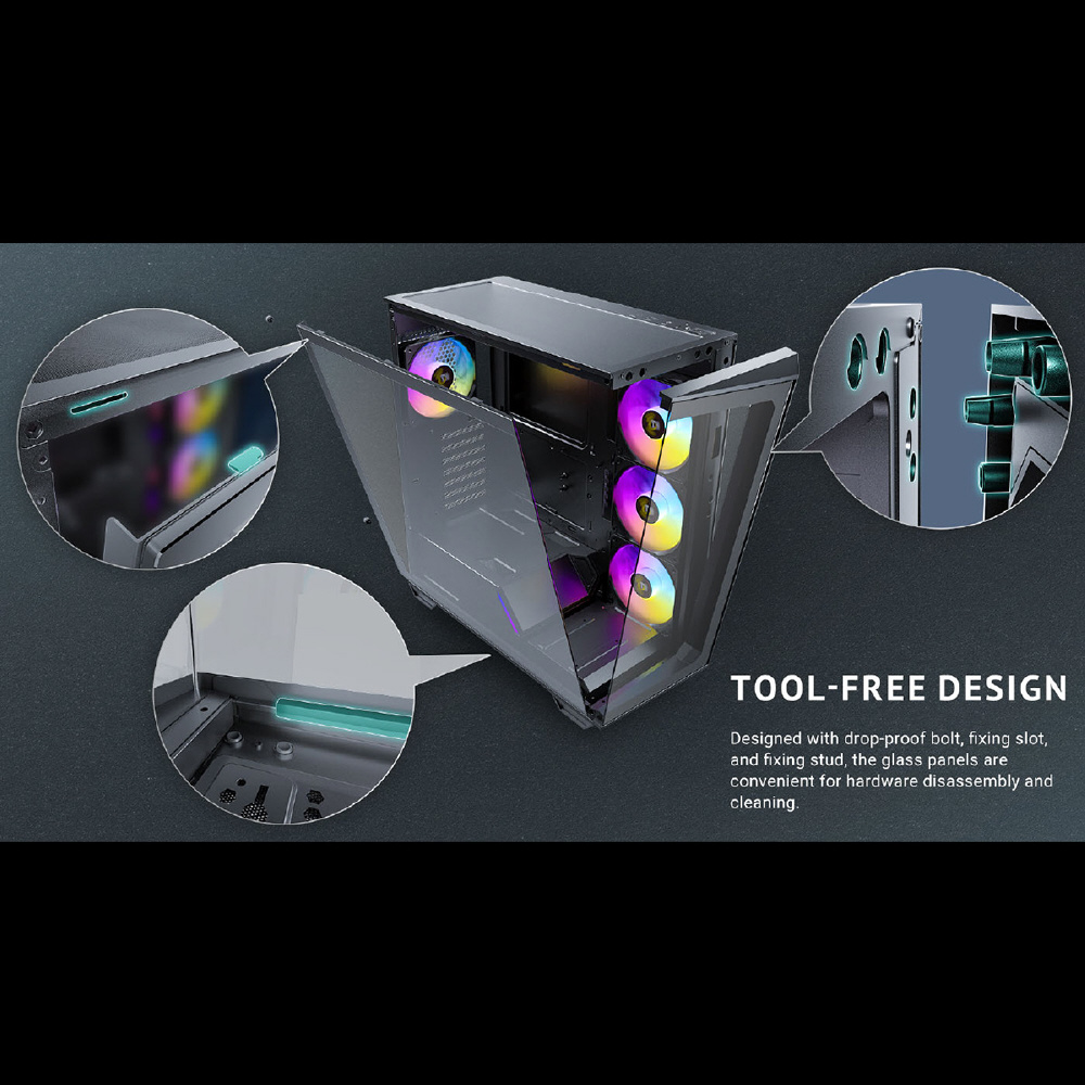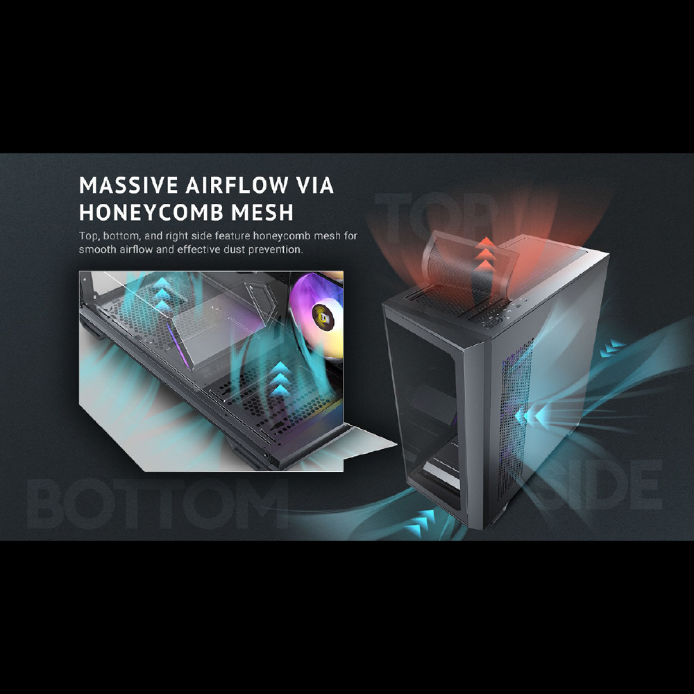 前面、側面強化ガラスパネル搭載 冷却型ミドルタワーPCケース