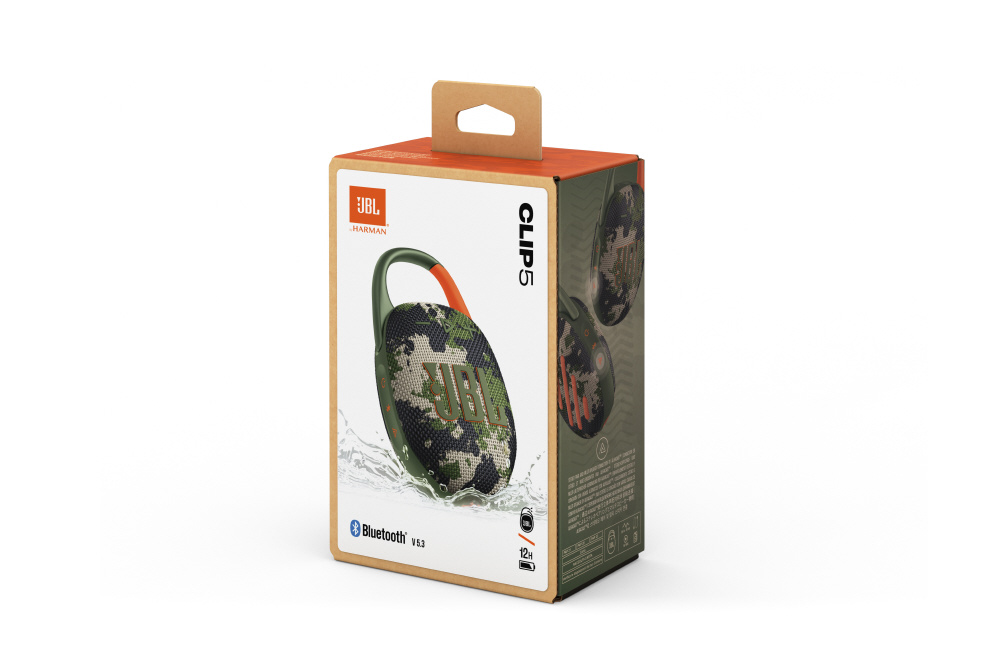 プラットフォームのアップデートはサウンド面でももちろん実施。「JBL CLIP 5」はパッシブラジエーターを10%拡大。それ伴いアンプも最適化することで、手のひらサイズのコンパクトな筐体を維持しながらも、前モデルからさらにブラッシュアップされたパワフルなJBLサウンドを実現しています。