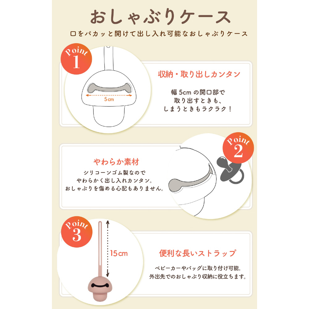 口をパカっと開けて出し入れ可能なおしゃぶりケース