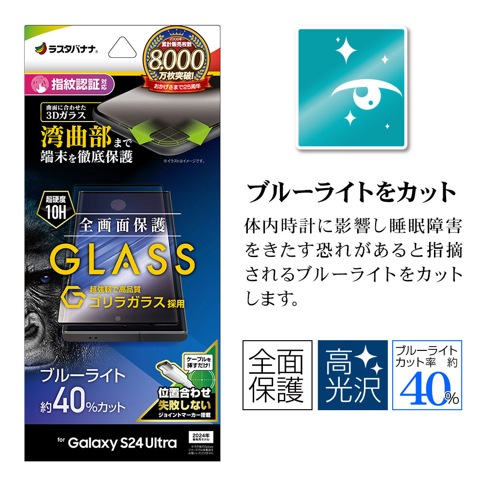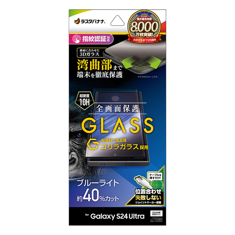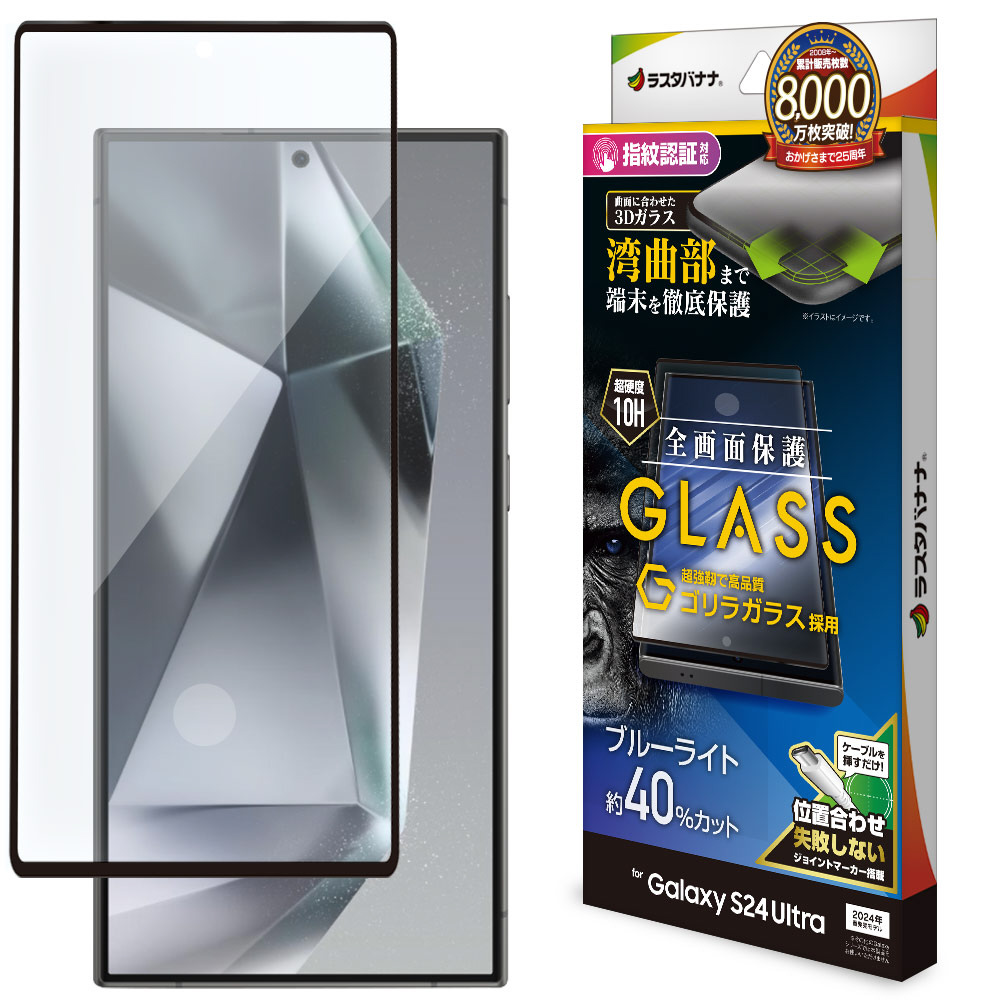 Galaxy S24 Ultra ゴリラガラス 全面保護 3Dガラス ブルーライトカット 高光沢 指紋認証対応 位置合わせJM付き ブラック 3GE4171GS24U