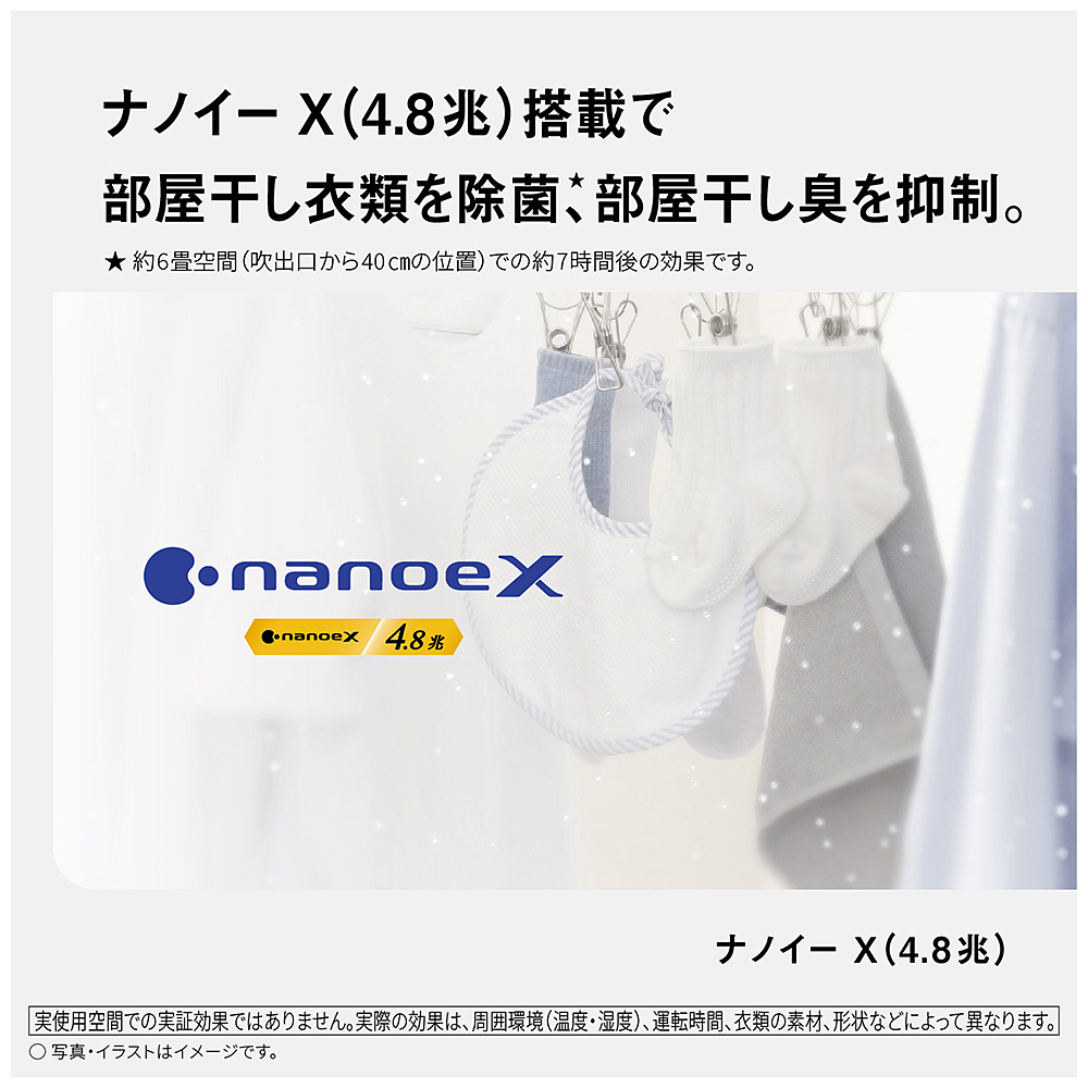 ●ナノイーX(4.8兆)で部屋干し衣類を除菌★1、部屋干し臭を抑制※1