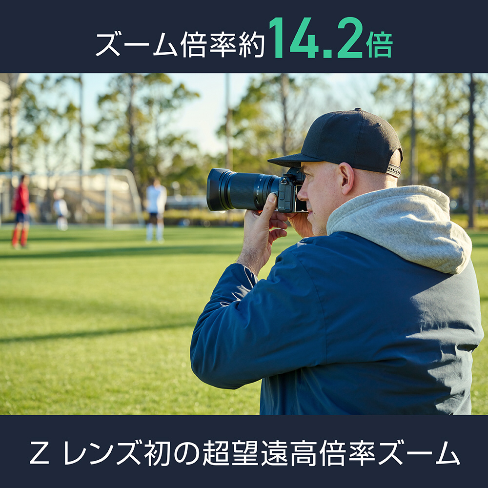 Z マウントレンズとしては初となる約14.2倍の高倍率ズームレンズ。広角28mmから超望遠400mmまでの幅広い焦点距離をカバーし、風景、乗り物、スポーツ、動物、植物、スナップまで、日常のあらゆるシーンに1本で対応します。