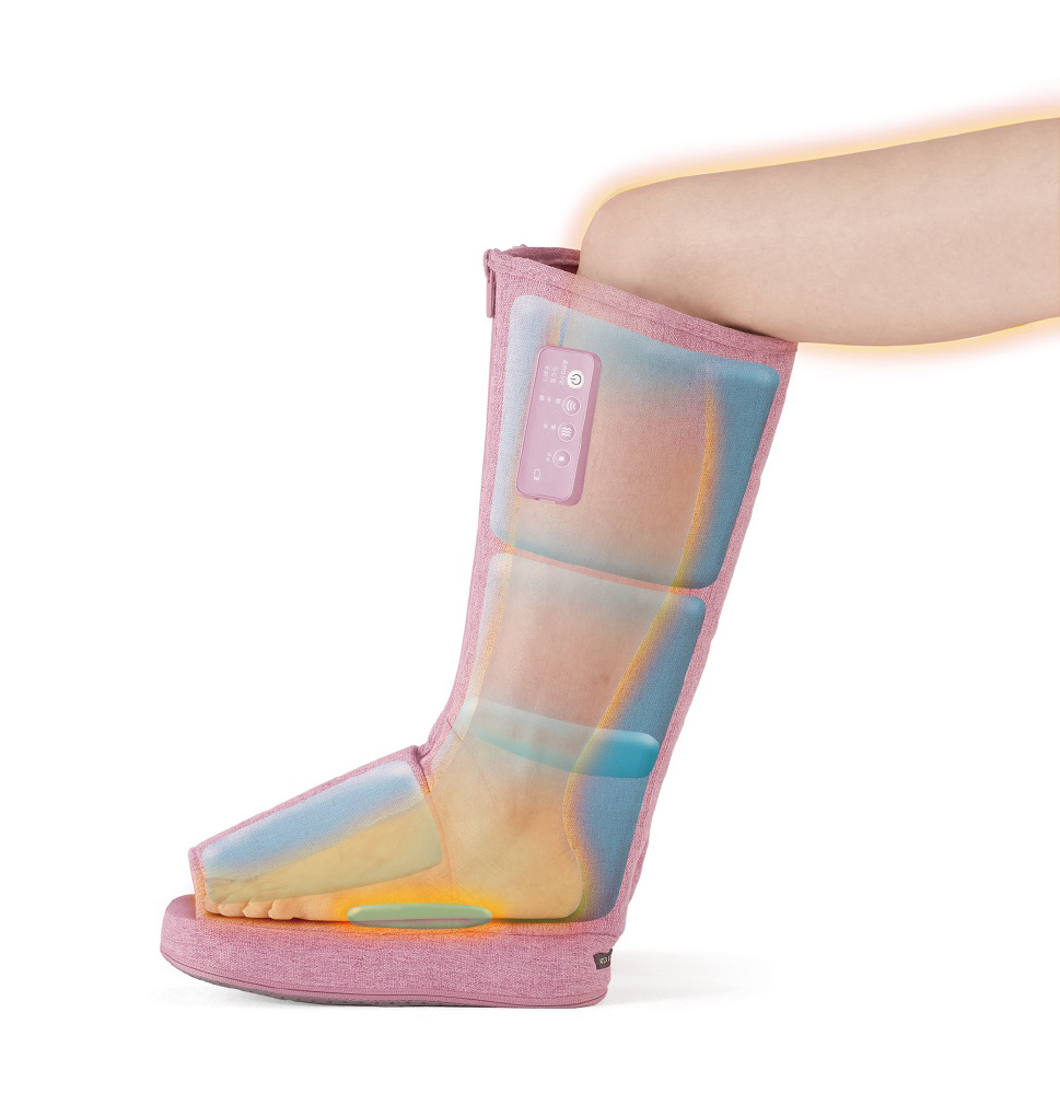 ふくらはぎ2ヵ所、かかと・足の甲・土ふまずの各1箇所にエアバッグを配し、足を包み込んで血行を良くします。
