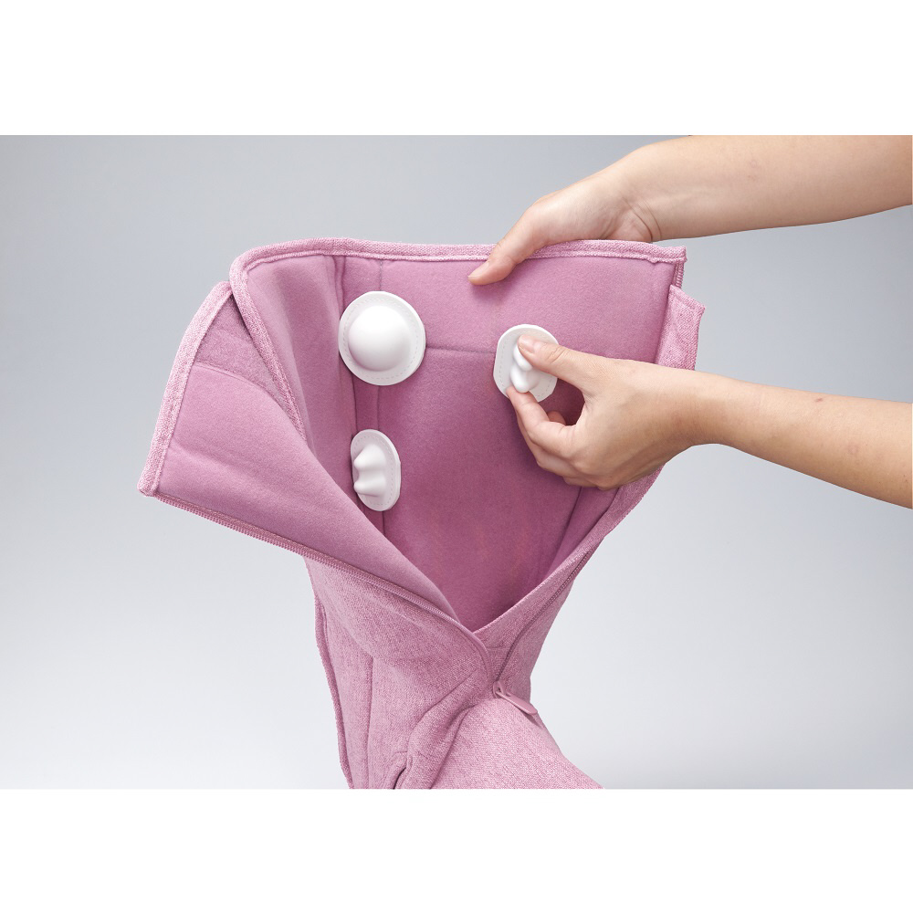 初回装着時に横の面ファスナーをご自身のサイズに調整して留めておくと、次回以降は前面のファスナーだけで簡単に着脱できます。