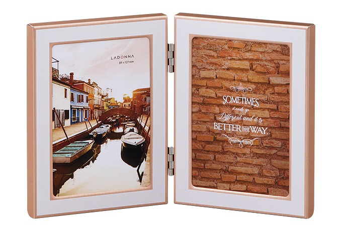 飾る写真を選ばない、シンプルでベーシックなデザインは、メタルとホワイトの組み合わせがアクセント