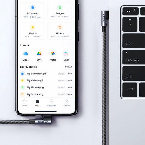 L字型のUSB Type-Cケーブル設計、頻繁にプラグを差し込んでも断線しにくい堅固な耐久性を実現。