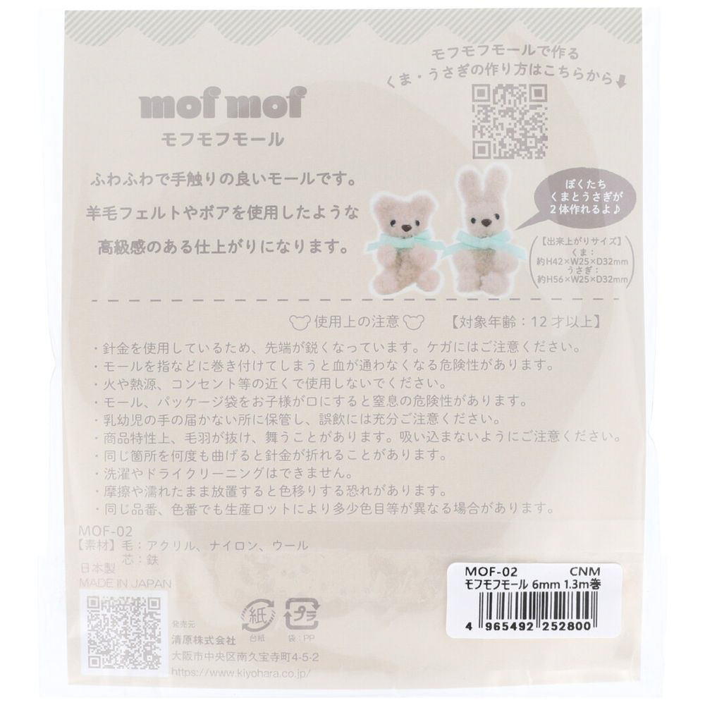 ■職人さんが1 本1 本こだわって制作したモフモフモールは手触りが良く、羊毛フェルトやボアを使用したような仕上がりで、手軽に本格的なミニチュアアニマルが作れます。