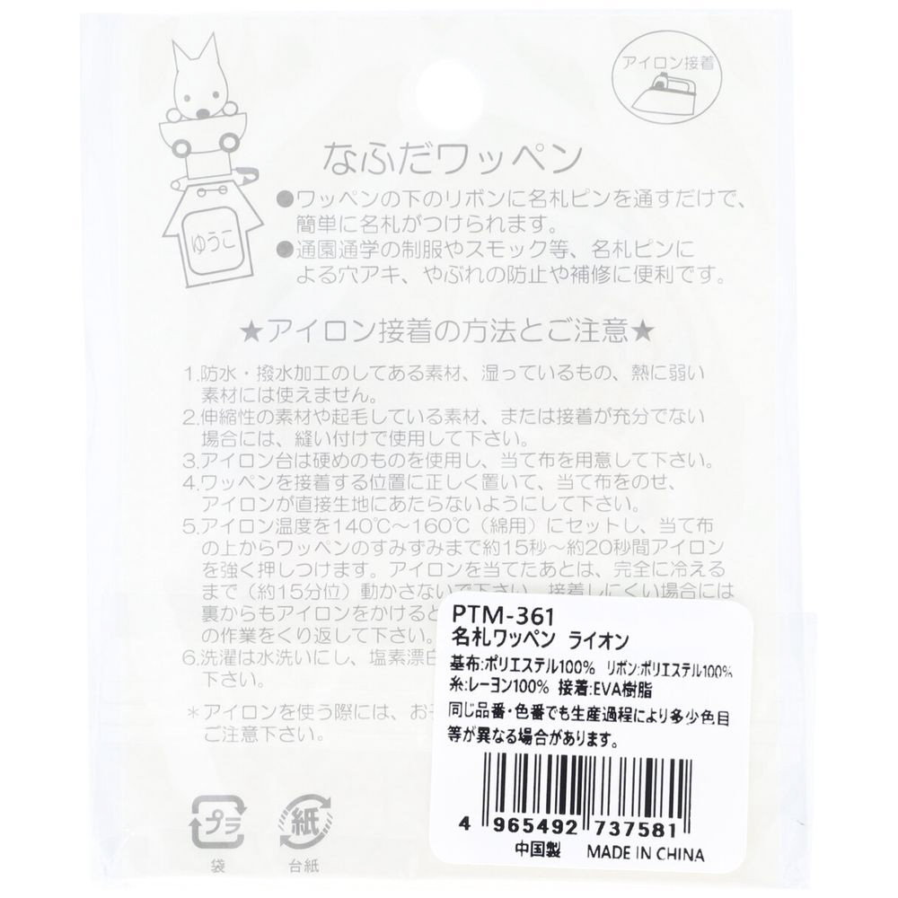 | 商品名 | プティデポーム 名札ワッペン |