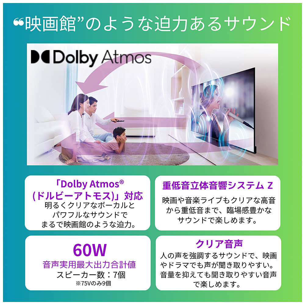 ◆上下左右方向に広がりを持たせ立体的な音に【立体音響技術「Dolby Atmos(ドルビーアトモス)」に対応】