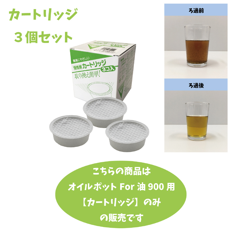 オイルポットFor油(ユウ)900用の活性炭フィルター交換用カートリッジ3個セットです。