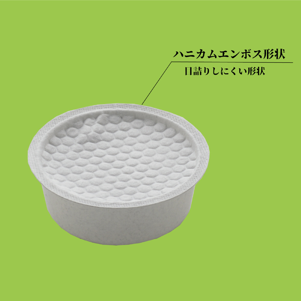 不織布フィルターは天面がハニカムエンボス形状の為、粉状のカスが溝に溜まり、目詰まりすることを軽減します。