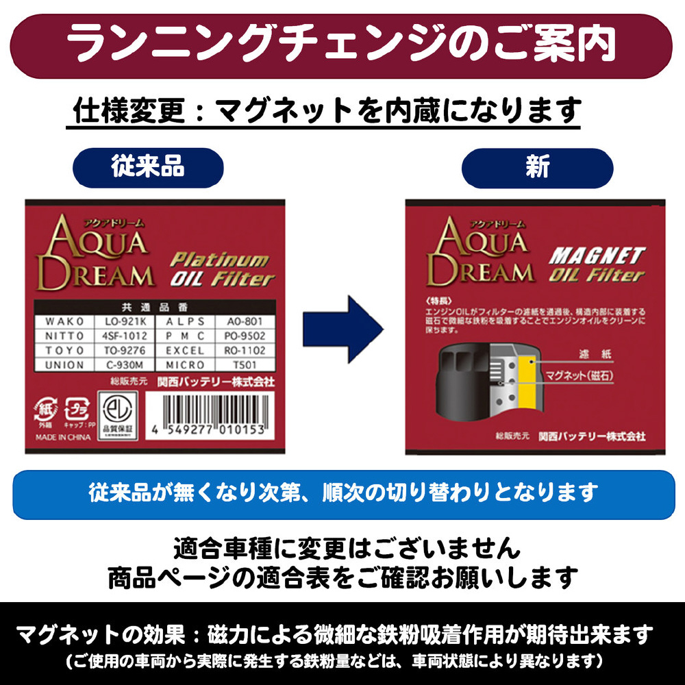 ●AQUA DREAM PLATINUM オイルフィルターは国産車主力車種に対応するラインナップで展開