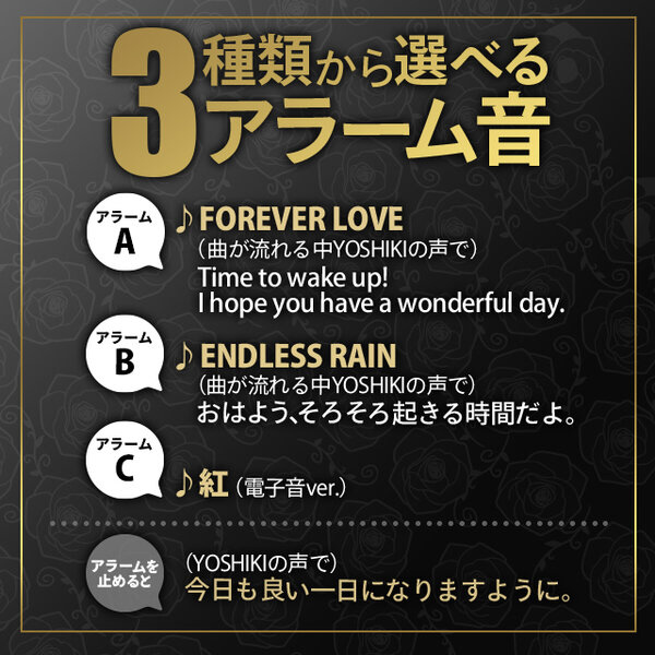 ■今回のために特別に録音したYOSHIKI氏本人の声と、X JAPANの名曲がアラーム音に
