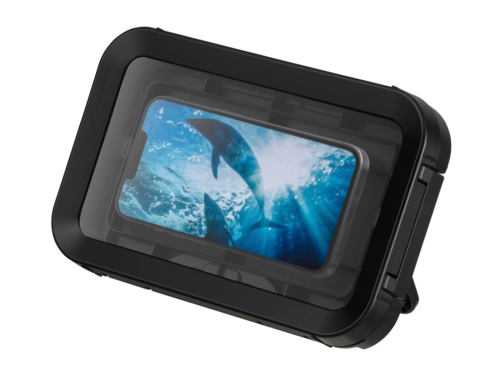 お風呂やキッチンなどの水周りでもスマートフォンの操作や通話、動画などの視聴が可能な防水ケース。角度調節可能な収納スタンド付、お風呂の壁に貼り付けられるマグネット付です。