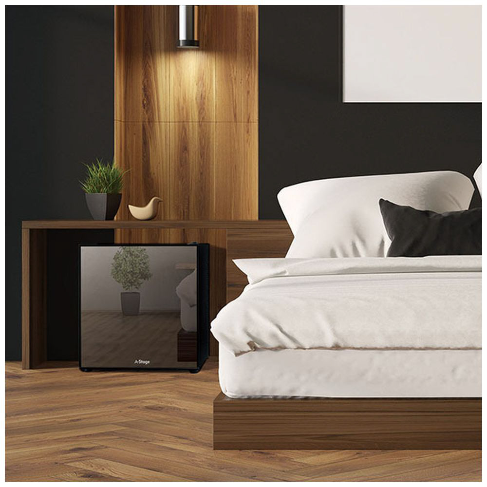 1ドアタイプのコンパクトな冷蔵庫。高級感のあるミラーガラス扉が、お部屋をシックに演出します。