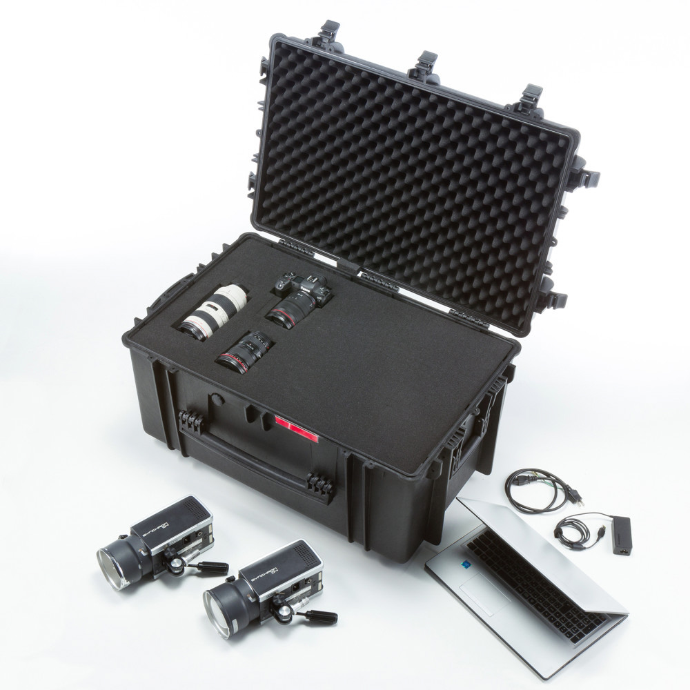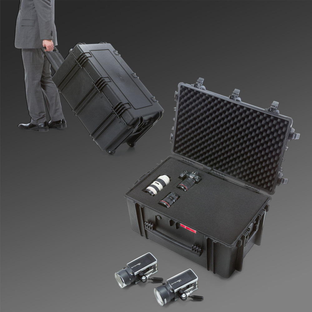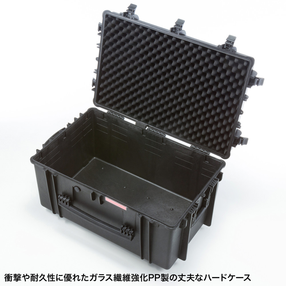 大型機器の持ち運びや保管に便利なキャリータイプのハードケース。