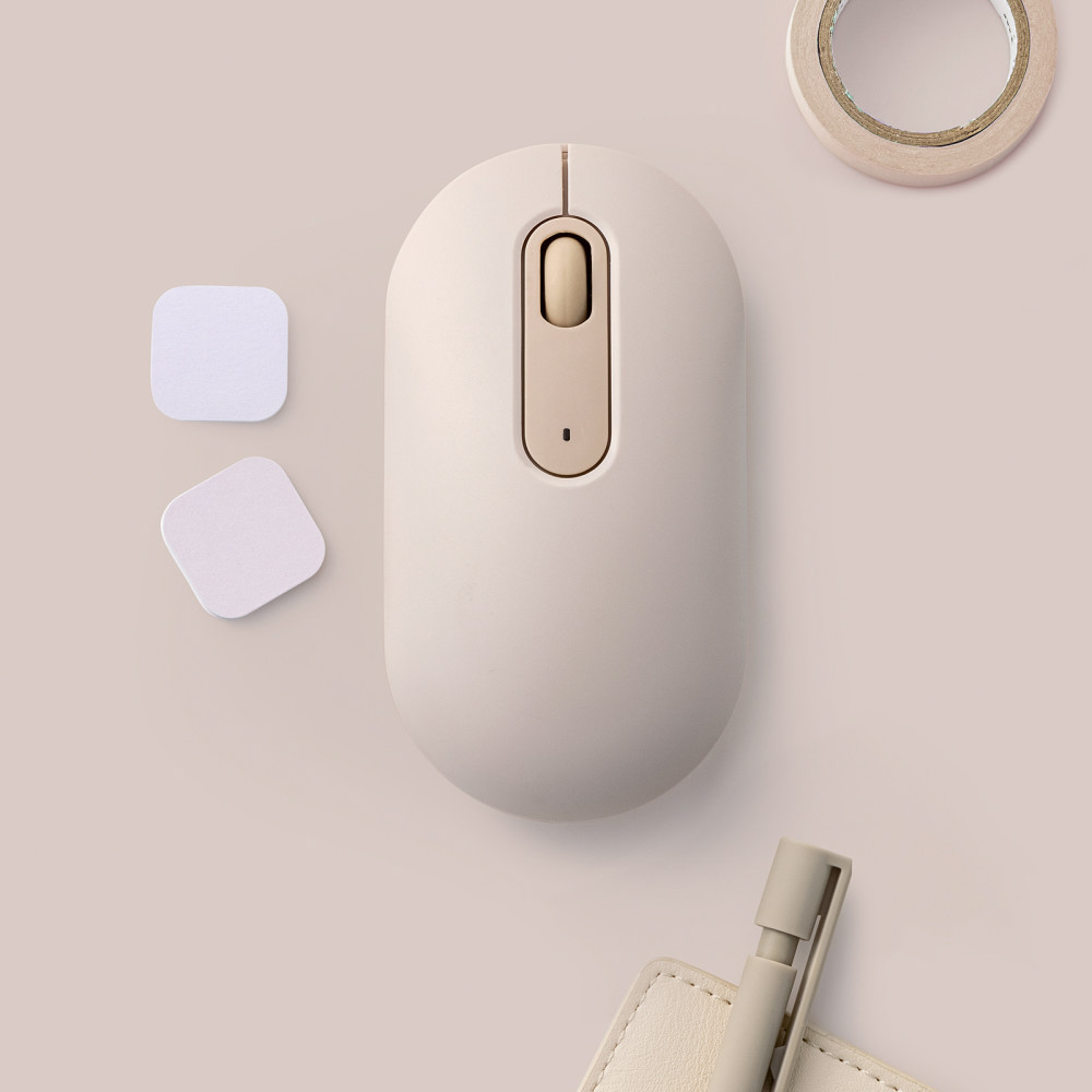 厚さ約30mmの薄型設計で、持ち運びしやすいワイヤレスマウス。レシーバーは上ケースの中に収納可能。