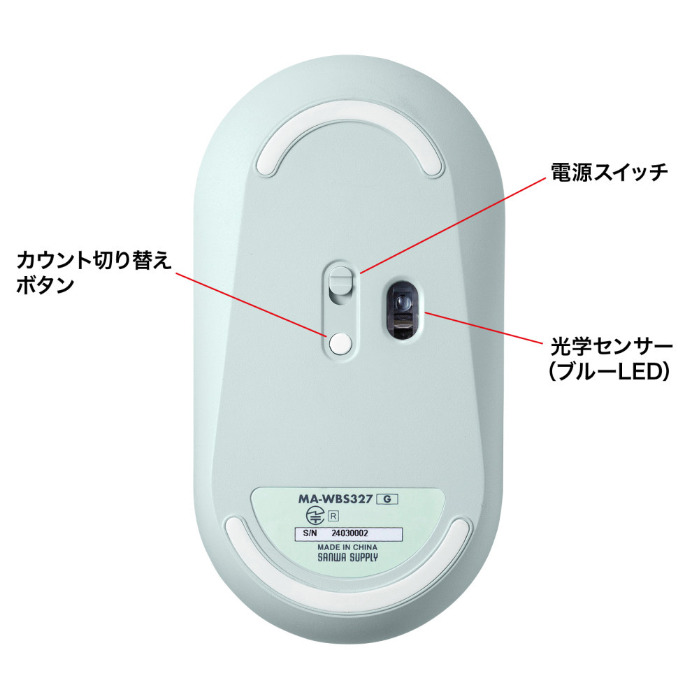 マウス (Chrome/Mac/Windows11対応) グリーン MA-WBS327G [BlueLED /無線(ワイヤレス) /3ボタン /USB]