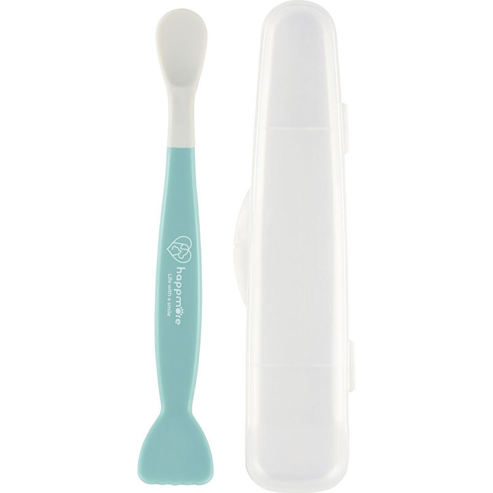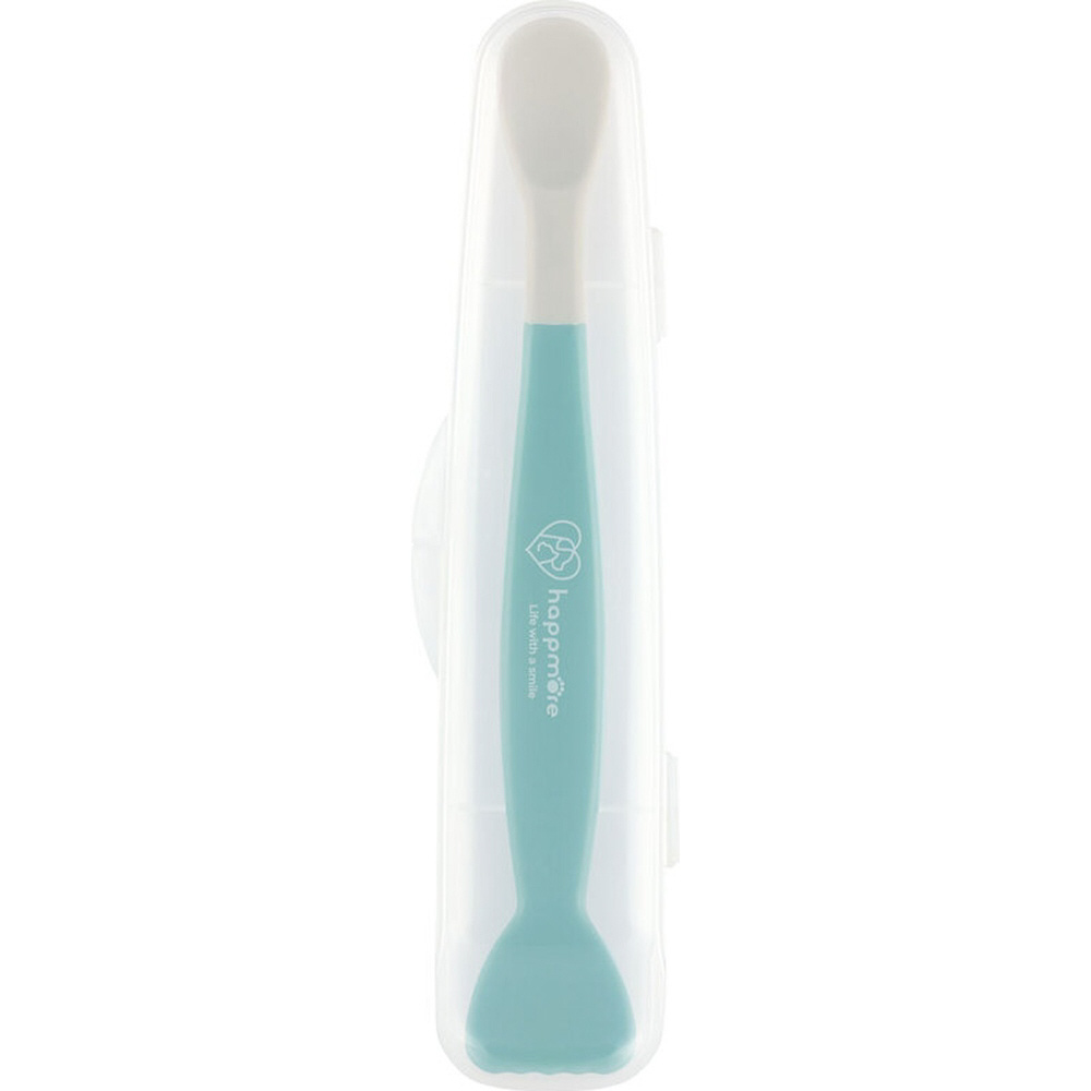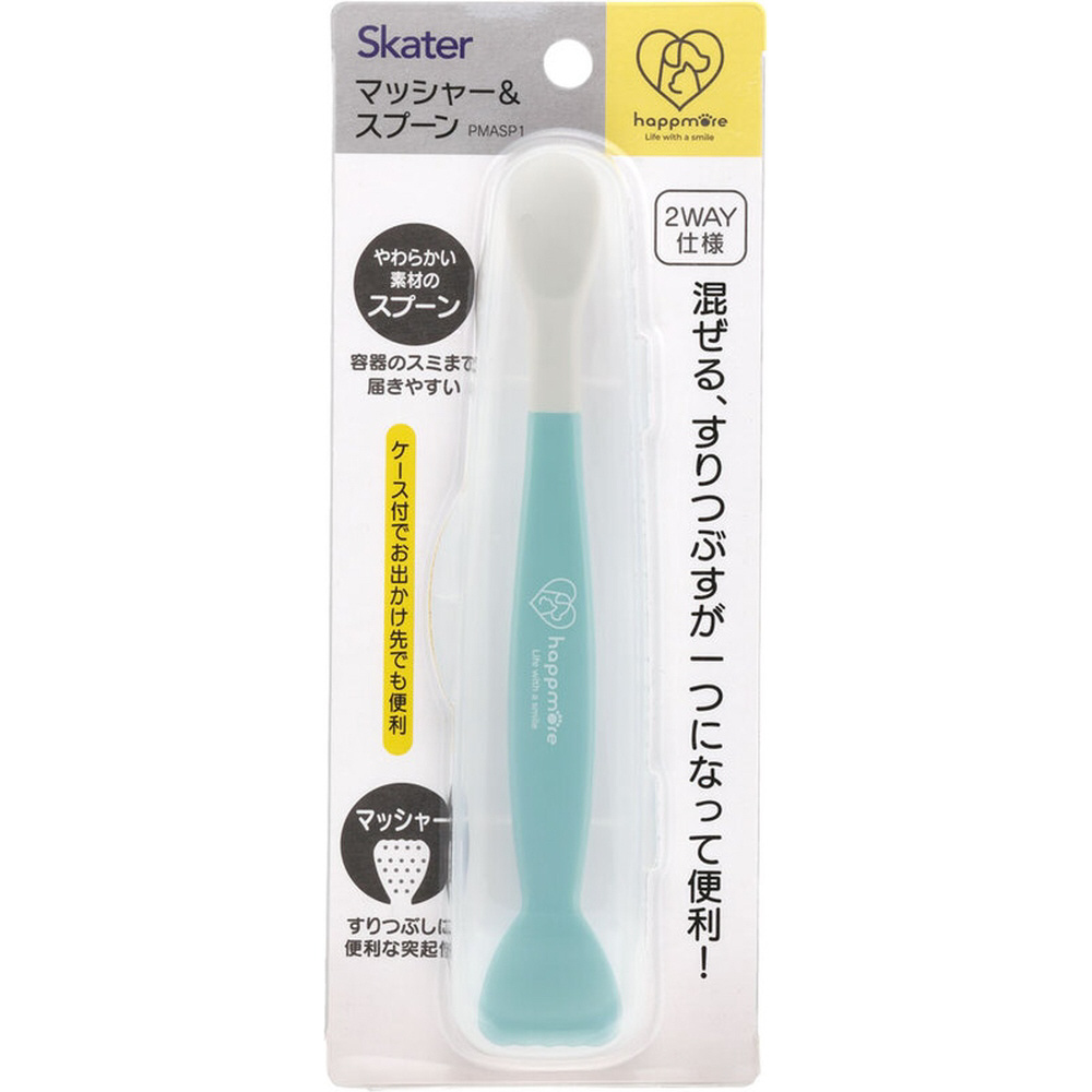 容器のスミまで届きやすい柔らか素材のスプーンとすりつぶしに便利な突起付きのマッシャーの2WAY仕様。