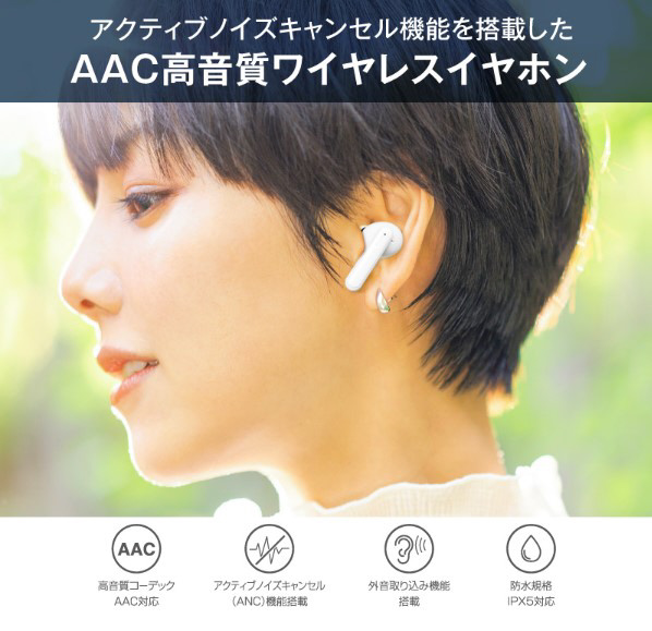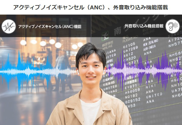 アクティブノイズキャンセル(ANC)、外音取り込み機能搭載
