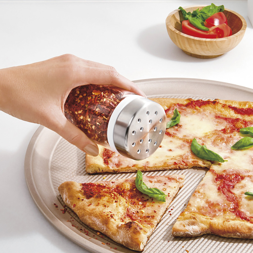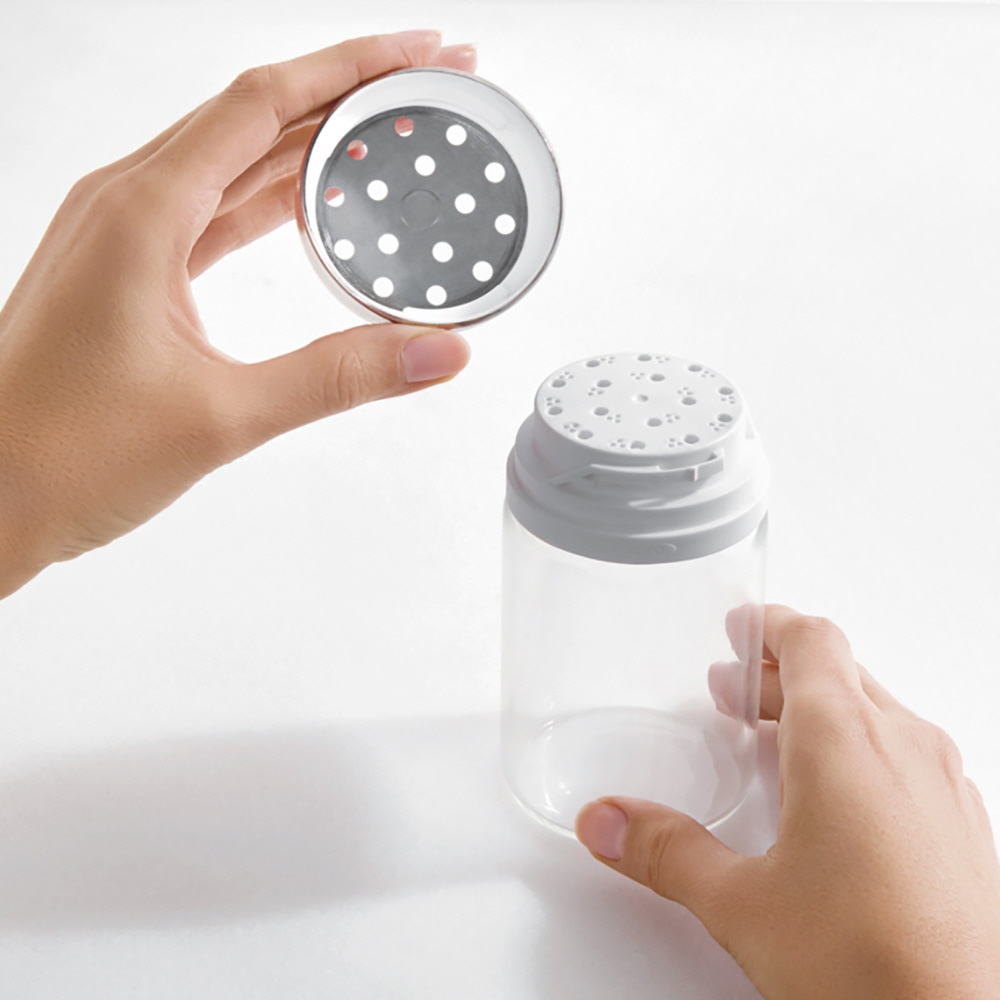 粉砂糖やシナモンパウダー、ガーリックパウダーなどに最適な小さい穴と、粗挽きのハーブやゴマなどに便利な大きな穴。