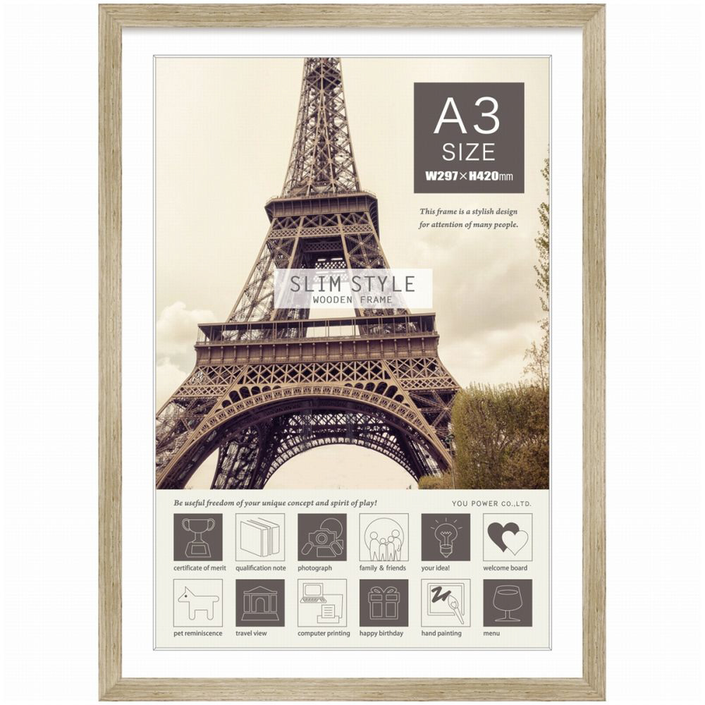 スリムスタイル 木製フレーム「A3サイズ(アプリコット グレー)」 SW-01804