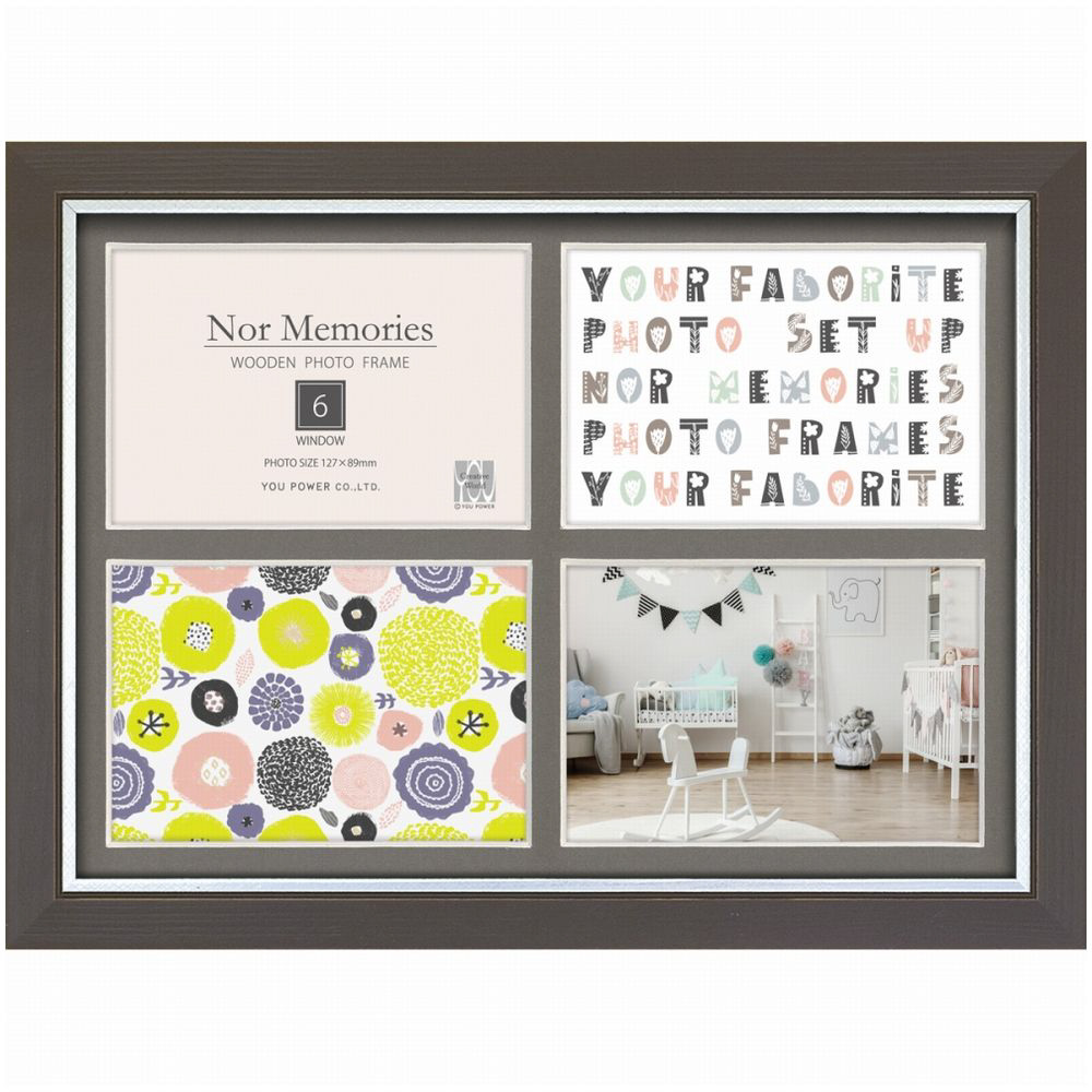 ノル メモリーズ 木製フォトフレーム「4ウィンドー(ウォームグレー)」 NF-02052