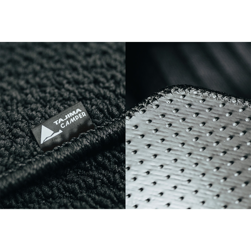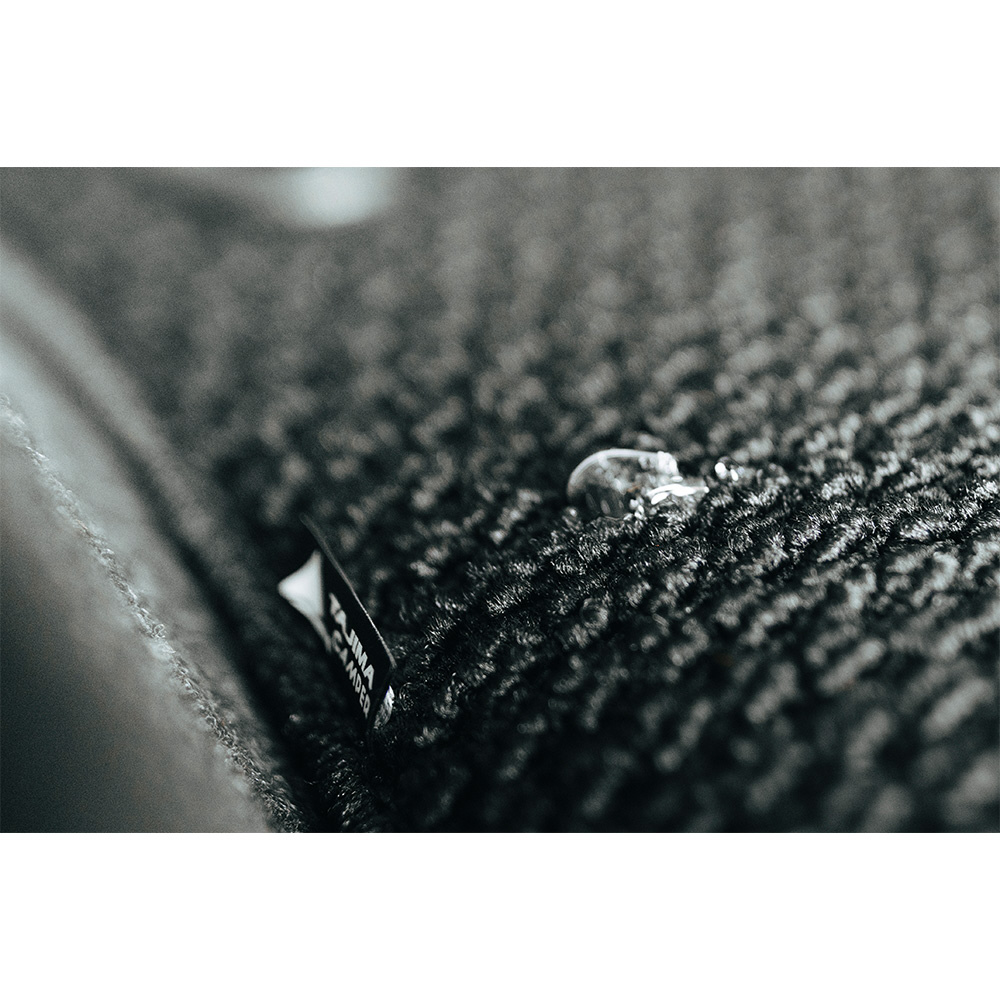 表面には、濡れても乾きやすいループ形状を採用。雨が続くじめじめした日や、アウトドアシーンでも、高い遮音性も相まって快適な足元空間を保ちます。