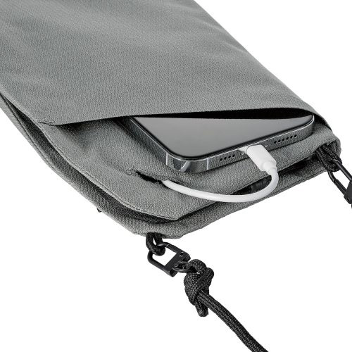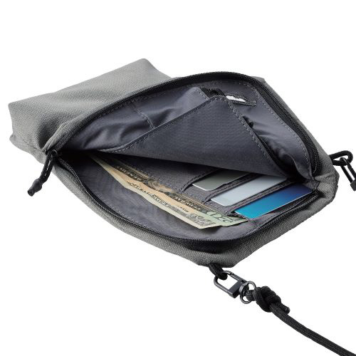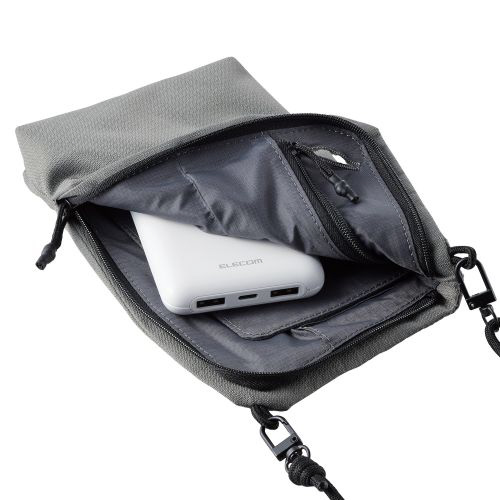 充電しながらスマートフォンを持ち運べる!スマートフォン、カード類や現金、小物など必要なものをまとめてコンパクトに持ち運べるショルダーポーチです。充電器をポーチに入れたままスマートフォンの操作ができ、バッテリー残量を気にすることなく決済が可能です。