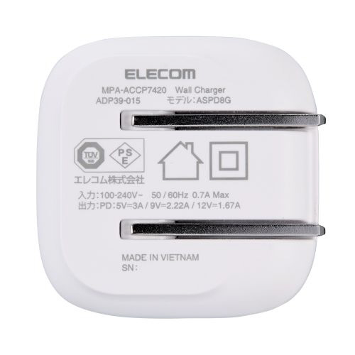 USB Power Deliveryに対応したUSB Type-C(TM)プラグを搭載し、対応するスマートフォン、タブレットなどを充電できるUSB AC充電器です。