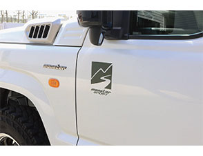 マットな質感のアースカラー素材を採用し、ミリタリーテイストを演出しました。発色、耐久性に優れた上質なシートを採用。ジムニーやエブリイなど、コンパクトカーにマッチしやすいサイズを吟味しました。前後、左右などの組み合わせで貼り付けていただける、2枚組パッケージ。貼付作業し易い、転写シート付き。